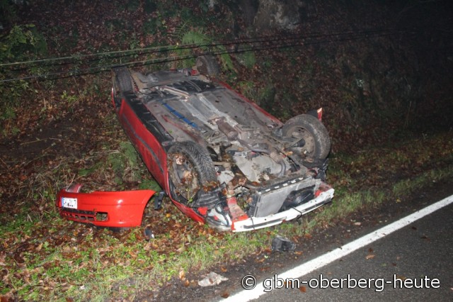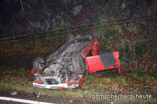 Morsbach - Heute Morgen um 5:10 Uhr verlor ein 19-jähriger Autofahrer auf der Wissener Straße in Volperhausen die Kontrolle über sein Fahrzeug. Der junge Fahrer kam aus seiner Heimatstadt Wissen und war auf der Landstraße 324 auf dem Weg in Richtung Morsbach. Nach einer Linkskurve rutschte der Pkw weg, geriet ins Schleudern und kollidierte mit einem Telefonmast und einem Leitpfosten. Anschließend kippte das Fahrzeug um und landete auf dem Dach. An dem Auto entstand hoher Sachschaden. Der Fahrer verletzte sich zum Glück nur leicht.