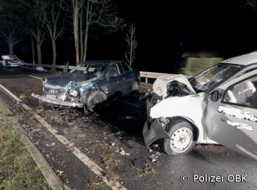 Waldbröl - Gestern befuhr ein 19-jähriger Pkw-Fahrer aus Reichshof, gegen 17:50 Uhr, die Hauptstraße (B 256) von Denklingen kommend in Fahrtrichtung Hermesdorf. Ausgangs einer langgezogenen Rechtskurve verlor der Fahranfänger auf regennasser Fahrbahn die Kontrolle über sein Auto, schleuderte über die Gegenfahrbahn und prallte an die Leitplanke. Anschließend kam es zum Frontalzusammenstoß mit dem PKW eines 51-jährigen Fahrers aus Bergisch Gladbach, der in Richtung Denklingen unterwegs war. Der 51-Jährige wurde bei dem Unfall schwer verletzt und mit dem Rettungswagen in ein Krankenhaus gebracht.