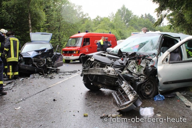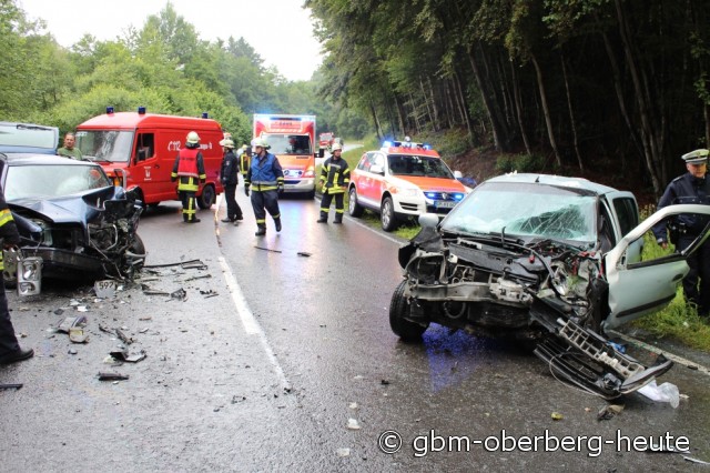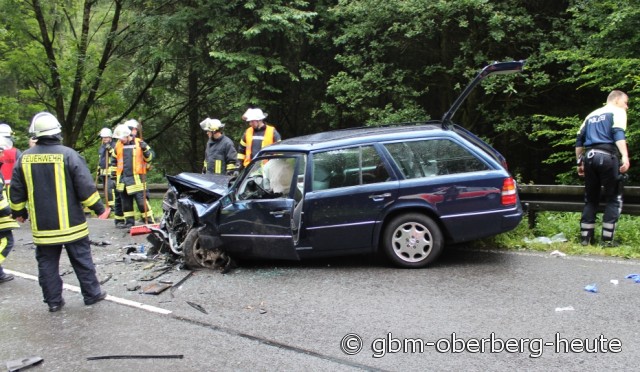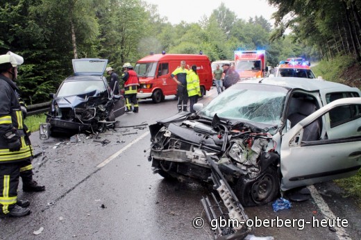 Wiehl - Am Samstag, gegen 16.00 Uhr, befuhr eine 28-Jährige mit einem PKW die Kreisstraße 15 vom Kreisverkehr Heckelsiefen aus kommend in Richtung Nümbrecht-Oberbierenbach. In einer leichten Rechtskurve geriet sie mit ihrem Fahrzeug auf den Fahrstreifen des Gegenverkehrs und kollidierte dort frontal mit dem PKW eines 35-Jährigen. Die 28-Jährige wurde in dem Fahrzeug eingeklemmt und musste von der Feuerwehr geborgen werden. Beide Beteiligte kamen mit schweren Verletzungen in umliegende Krankenhäuser. Den Schaden an den bereits älteren Fahrzeugen schätzt die Polizei auf etwa 10.000 Euro. (red.-29.06.2014 09:50)