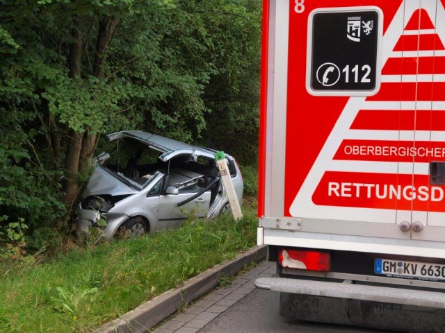 Wiehl - Zwei Schwerverletzte und hoher Sachschaden sind nach einem Unfall zu beklagen, der sich am Dienstagmorgen, um 8:55 Uhr in Bielstein ereignete. Ein 77-jähriger Pkw-Fahrer befuhr die Bielsteiner Straße ( L336) aus Richtung Weiershagen kommend in Richtung Bielstein-Ortsmitte. Nach einer längeren Geraden folgte der 77-Jährige zu Beginn einer Linkskurve nicht dem Fahrbahnverlauf und fuhr aus noch ungeklärten Gründen weiter geradeaus über einen Grünstreifen gegen einen Baum.