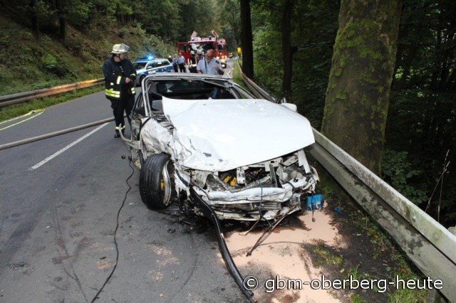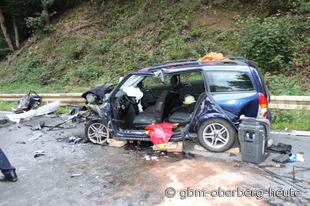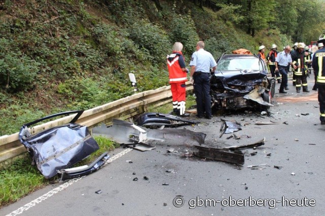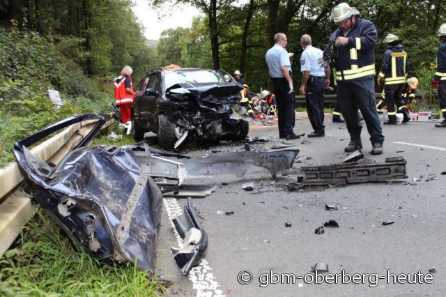Der Fahrer driftete nach links und schleuderte gegen einen entgegenkommenden Opel Astra. Dieser wurde gegen die Leitplanke gedrückt und der 40-jährige Fahrer aus Morsbach im Fahrzeug eingeklemmt. Nachdem er durch die Feuerwehr befreit werden konnte, wurde er mit einem Rettungshubschrauber nach Köln-Merheim geflogen. Der 24-Jährige wurde bei dem Unfall ebenfalls schwer verletzt und mittels RTW einem Krankenhaus zugeführt. An beiden Fahrzeugen entstand Totalschaden. Sie wurden von der Unfallstelle abgeschleppt. Die L336 wurde während der Unfall-/Bergungs- und Aufräumarbeiten für rund 3,5 Stunden voll gesperrt. Ausgelaufene Betriebsstoffe wurden durch eine Fachfirma beseitigt. Es entstand hoher Sachschaden. (gbm-01.09.2014 23:00) (aktualisiert-02.09.2014 07:34)