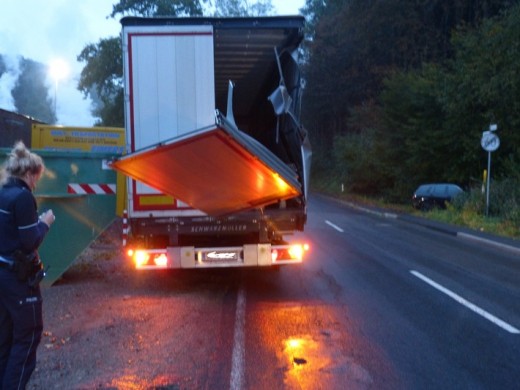 Lindlar - Hohen Sachschaden verursachte ein unbekannter Lkw-Fahrer bei einem Unfall in Lindlar-Frielingsdorf. Ein Lkw-Fahrer aus Österreich stellte seinen Lkw am Fahrbahnrand der L 97 zwischen Kaiserau und Marienheide ab. In Höhe der Unfallstelle ändert sich die Straßenbezeichnung von Kaiserau in Oberleppe. Das rechte Heck seines Lkw ragte in die Fahrbahn. Während seiner 15-minütigen Abwesenheit, am Mittwoch (14.10.) zwischen 07:30 Uhr und 07:45 Uhr fuhr ein Unbekannter gegen das Heck des Lkw und verursachte einen Schaden in Höhe von etwa 10.000 Euro. Hinweise bitte an das Verkehrskommissariat Wipperfürth unter der Tel. Nr. 02261 81990. (red.-15.10.2015 15:24)