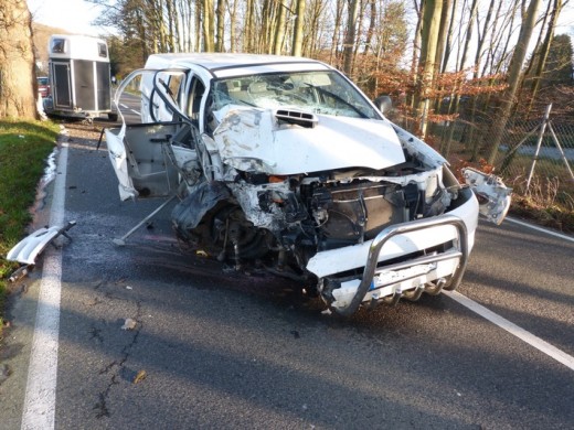 Durch die Wucht des Aufpralls riss der Anhänger vom Fahrzeug ab. Die 39-Jährige erlitte leichte Verletzungen das Gespann wurde total beschädigt und musste abgeschleppt werden. (red.-29.12.2015 17:44)
