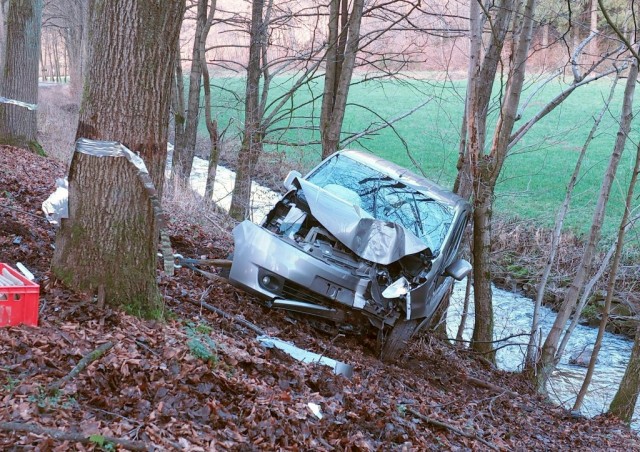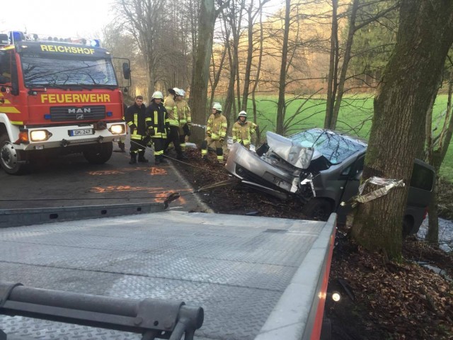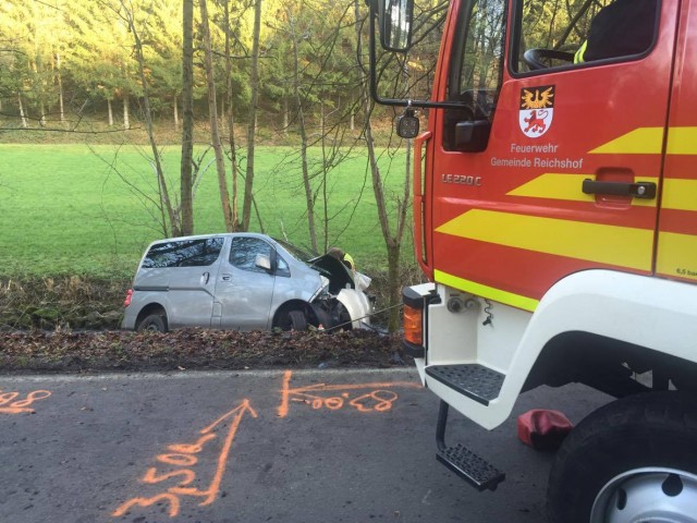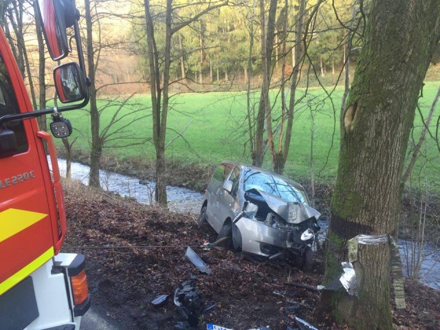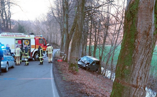 Reichshof - Aus bislang ungeklärter Ursache hat eine Autofahrerin heute Nachmittag die Kontrolle über ihren PKW verloren. Das Fahrzeug kam von der Straße ab, prallte frontal gegen einen Baum, rutschte dann eine Böschung hinunter und drohte in den Bach zu stürzen. Die Feuerwehr sicherte das Fahrzeug und sorgte für die Bergung.