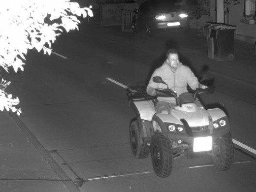 Reichshof - In Reichshof - Neumühle ist am 31. Mai zwischen 05.10 Uhr und 06.10 Uhr ein Quad TGB Blade 325 gestohlen worden. Kurze Zeit später wurde der bislang unbekannte Fahrer des gestohlenen Quads in Mittelagger von einer stationären Blitzanlage fotografiert.