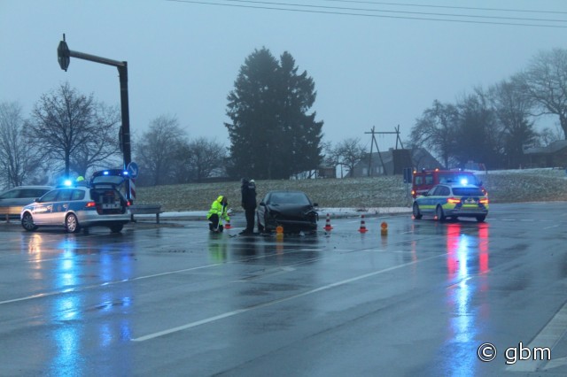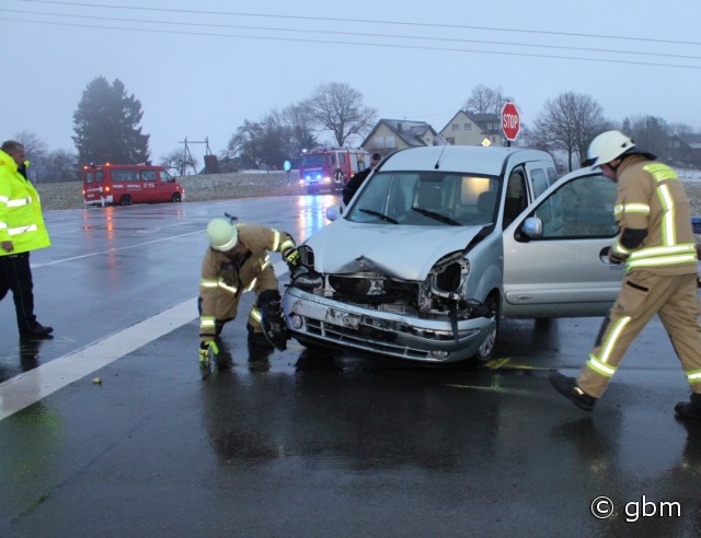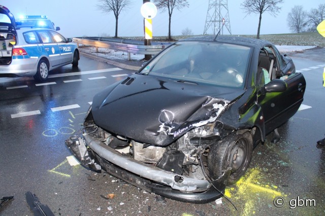 Reichshof - Kurz nach acht Uhr befuhr am Mittwochmorgen (4.1.) ein 18-jähriger PKW-Fahrer aus Morsbach die Landstraße 324 in Richtung Erdingen. Er wollte an der Kreuzung mit der Landstraße 344 nach links in Richtung Brüchermühle abbiegen. Dabei kollidierte er im Kreuzungsbereich frontal mit dem PKW einer 23-Jährigen aus Reichshof,die ihm aus Richtung Erdingen auf der L324 entgegen kam. Ein Krankenwagen brachte die Beteiligten zur Behandlung in das Krankenhaus nach Waldbröl. Bis zur Bergung der stark beschädigten Fahrzeuge kam es im Bereich der Kreuzung zu Behinderungen. (red.-04.01.2017 14:13)