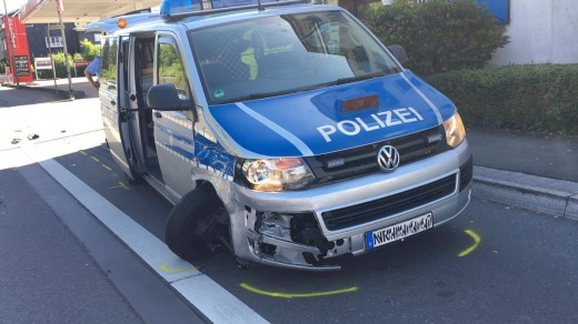 Am Samstag, gegen 10:45 Uhr befuhr ein Streifenwagen die Vollmerhauser Straße in Fahrtrichtung Dieringhausen. Das Einsatzfahrzeug war mit eingeschaltetem Blaulicht und Martinshorn unterwegs. Als zwei vorausfahrenden Autos ihre Geschwindigkeit verringerten, wollte der Polizeibeamte die Fahrzeuge überholen. Während des Überholvorgangs kam es jedoch zum Zusammenstoß zwischen dem Einsatzfahrzeug und dem Auto der 59-jährigen Gummersbacherin, da diese nach links abbiegen wollte. Bei dem heftigen Zusammenstoß blieben die beiden Polizeibeamten (Fahrer und Beifahrer) unverletzt. (red.-10.06.2017 17:02)