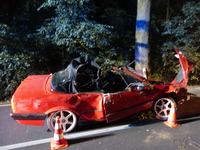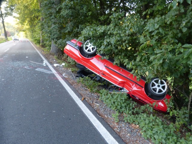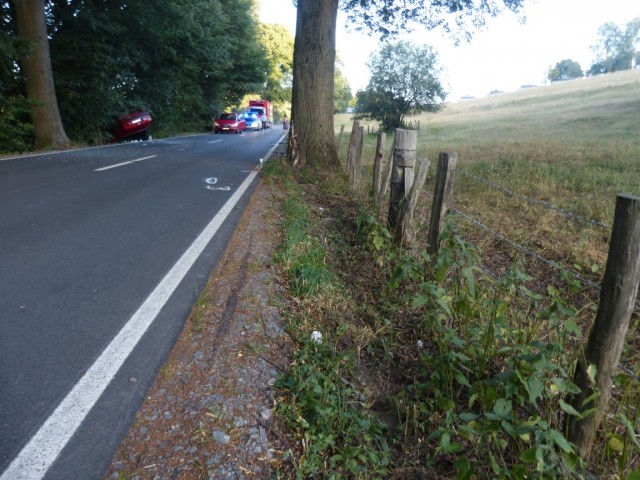 Radevormwaldd - Auf der L414 endete am Dienstag die Fahrt eines 18-jährigen Fahranfängers an einem Baum. Der Hückeswagener war um 19:30 Uhr mit einem roten BMW-Cabrio auf der Uelfe-Wuppertal-Straße (L 414) aus Richtung Dahlerau kommend in Richtung Radevormwald gefahren. In einer Rechtskurve verlor er die Kontrolle über seinen Wagen, kam von der Fahrbahn ab und geriet in den Grünstreifen. Dort prallte er gegen einen Baum. Durch die Wucht des Aufpralls wurde das Fahrzeug hoch geschleudert, überschlug sich und landete auf der gegenüberliegenden Straßenseite im Grünstreifen auf dem Dach. Bis auf einen Schock und ein paar Schürfwunden zog sich der Fahrer nach ersten Erkenntnissen keine schlimmeren Verletzungen zu. Dennoch wurde er mit einem Rettungswagen zur stationären Behandlung in ein Krankenhaus gebracht. An dem BMW entstand Totalschaden; er musste abgeschleppt werden. Die Bergung des Fahrzeugs gestaltete sich etwas schwieriger, da der BMW in Hanglage zum Liegen kam. Die Feuerwehr kam mit einer Seilwinde zum Einsatz. (red.-24.07.2019 12:31)