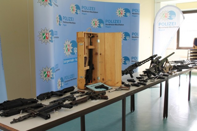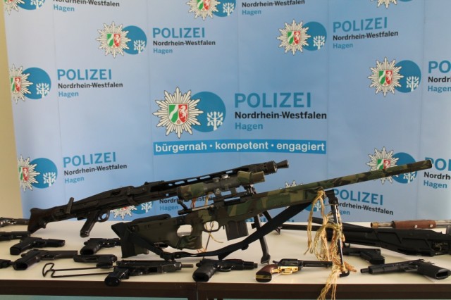 Hagen / Radevormwald - Am Mittwoch, den 28.08.2019, um 06:00 Uhr fanden in den Städten Dortmund, Lünen, Radevormwald, Remscheid, Menden, Duisburg und Wilhelmshaven (Niedersachsen) insgesamt 12 Durchsuchungen wegen illegalem Waffenhandel statt. Diese Maßnahmen sind Ausfluss aus einem von der Staatsanwaltschaft Arnsberg mit der OK-Dienststelle des PP Hagen geführten Verfahrens wegen illegalem Waffenhandel.