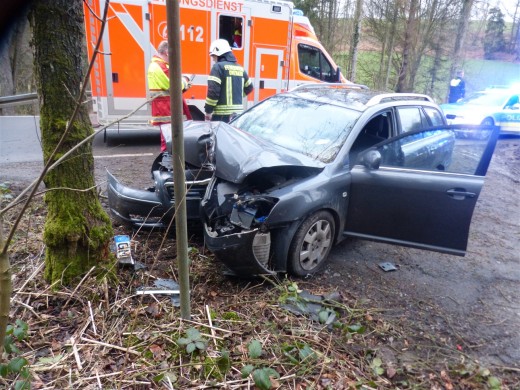 Lindlar - Zum Glück nur Verletzungen erlitt ein 51-jähriger Lindlarer, nachdem er am Dienstagmorgen mit seinem Toyota frontal gegen einen Baum geprallt war. An dem PKW entstand Totalschaden.