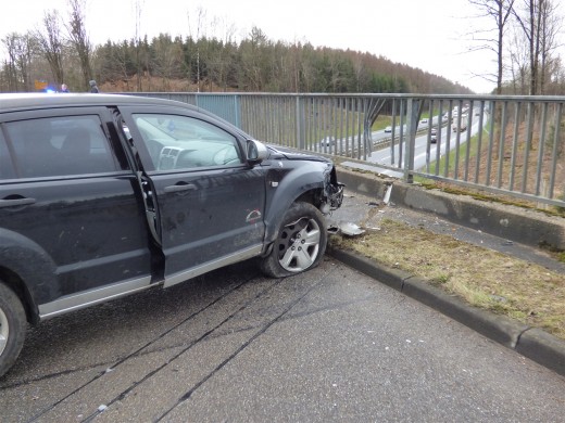 Um 13:45 Uhr fuhr ein 38-Jähriger Mann aus Lettland auf der K52 aus Richtung Marienhagen kommend in Fahrtrichtung Bomig. Im Bereich einer Autobahnbrücke verlor er die Kontrolle über sein Fahrzeug und prallte gegen das Brückengeländer. Der 38-Jährige zog sich dabei leichte Verletzungen zu. Sowohl der Fahrer als auch sein Beifahrer standen augenscheinlich unter Alkoholeinfluss. Da der 38-jährige Fahrer keine Ausweispapiere mitführte, wurde er zur Identitätsfeststellung vorläufig festgenommen. Auf der Polizeidienststelle führten die Beamten eine erkennungsdienstliche Behandlung bei ihm durch. Zudem musste er eine Blutprobe abgeben.