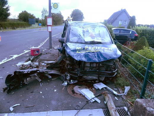 Durch herumfliegende Splitterteile wurden zwei geparkte Autos in Mitleidenschaft gezogen. Der Vito des 18-Jährigen war nicht mehr fahrbereit und musste abgeschleppt werden. Der 18-Jährige zog sich bei dem Crash leichte Verletzungen zu. Ein Rettungswagen brachte ihn zur ambulanten Behandlung in ein Krankenhaus. (red.-01.09.2020 17:12)