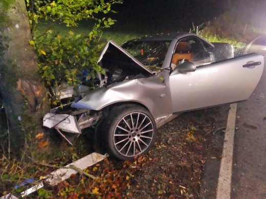 Wiehl - Ein 22-jähriger Mercedesfahrer ist kurz nach Mitternacht in Wiehl-Mühlhausen von der Fahrbahn abgekommen und frontal mit einem Baum kollidiert. Der junge Mann aus Wiehl hatte gegen 00.10 Uhr die Straße "Auf der Bliebach" (K 48) in Richtung Marienhagen befahren. Am Ende einer langgezogenen Linkskurve verlor er die Kontrolle über seinen Wagen, kam nach rechts von der Fahrbahn ab und fuhr dort frontal vor einen Baum. Ein Rettungswagen brachte den schwerverletzten 22-Jährigen in ein Krankenhaus. Der Mercedes hat nur noch Schrottwert. (red.-30.09.2020 15:52)