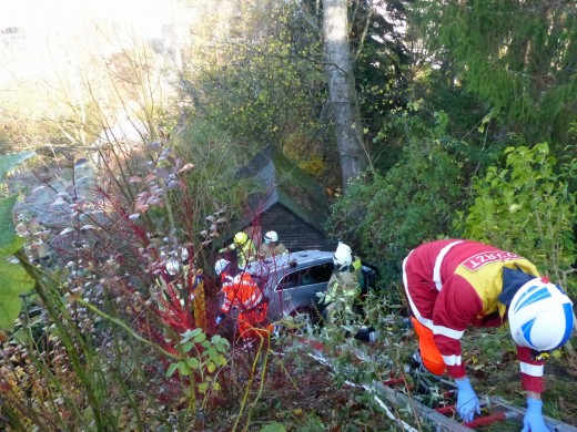 Reichshof - Leichte Verletzungen hat sich ein 61-jähriger Autofahrer am Donnerstag zugezogen, der von einem Parkplatz aus eine etwa sechs Meter hohe Böschung hinunterfuhr und von der Feuerwehr aus seinem Auto befreit werden musste.