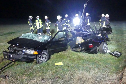 Der Fahrer und eine 17-jährige Beifahrerin kamen mit schweren Verletzungen in umliegende Krankenhäuser; ein weiterer Mitfahrer überstand den Unfall unverletzt. Der BMW wurde von einem Abschleppunternehmen geborgen und dürfte nur noch Schrottwert haben. (red.-22.11.2020 15:08)
