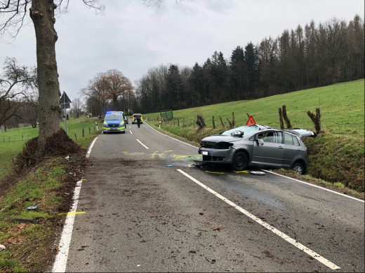 Um 11:45 Uhr fuhr die Wiehlerin auf der Zeithstraße aus Richtung Forst kommend in Fahrtrichtung Kaltenbach. Aus bislang ungeklärter Ursache kam sie auf gerader Fahrbahn zunächst rechts von der Fahrbahn ab, prallte gegen einen Baum, überschlug sich und landete schließlich links neben der Fahrbahn in einem Graben. Die 20-Jährige zog sich dabei leichte Verletzungen zu. Ein Rettungswagen brachte sie zur Untersuchung in ein Krankenhaus. An ihrem VW entstand Totalschaden. Das Fahrzeug musste abgeschleppt werden. (red.-07.02.2021 14:08)