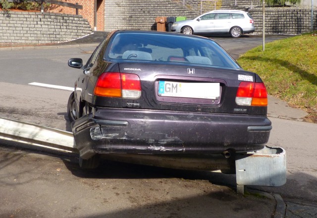 Gummersbach - Da ist für einen 41-jährigen Marienheider am Freitag so einiges schief gelaufen. Um 12:35 Uhr wollte er mit seinem Honda auf der Großenohlstraße in Gummersbach-Derschlag wenden. Dabei fuhr er mit solcher Wucht rückwärts dass der Honda auf die dortige Schutzplanke "aufgeladen" wurde. Statt die Polizei zu verständigen, ließ er seinen Wagen zurück und flüchtete von der Unfallstelle.