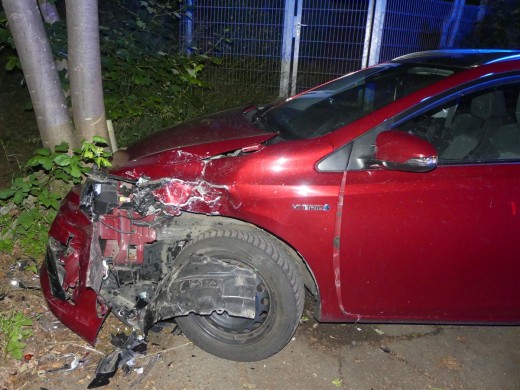 Morsbach - Eine stark alkoholisierte Autofahrerin aus Morsbach ist am Mittwochabend auf der Krottorfer Straße verunfallt. Die 37-Jährige hatte gegen 23 Uhr von der Alzener Landstraße auf die Krottorfer Straße abbiegen wollen. Dies gelang der Fahrerin allerdings nicht. Sie querte die Krottorfer Straße und fuhr nahezu geradeaus auf einen Parkplatz, wobei sie einen Sperrpfosten überfuhr. Anschließend prallte sie zunächst gegen einen geparkten Pkw, bevor die Fahrt etwa fünf Meter weiter an einem Baum endete.