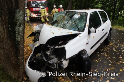 Much - Ein 21-jähriger Mann aus Nümbrecht ist am Donnerstag (21.07.2022) bei einem Verkehrsunfall leicht verletzt worden. Gegen 17:15 Uhr befuhr er mit seinem Renault die Kreisstraße 31 (K31) in Much aus Richtung Werschtalstraße in Richtung Bruchhausen. In einer Rechtskurve kam der 21-Jährige aus bislang unbekannten Gründen nach rechts von der Fahrbahn ab und kollidierte frontal mit einem Baum.