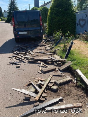 Engelskirchen - Den Zaun eines Vorgartens hat am Sonntagnachmittag der alkoholisierte Fahrer eines Kleintransporters in viele Einzelteile zerlegt. Der 31-Jährige war gegen 16.15 Uhr auf der Hahner Straße in Engelskirchen-Remerscheid unterwegs, als er nach rechts von der Fahrbahn abkam. Der Kleintransporter überfuhr dabei etwa 20 Meter eines Gartenzauns, der dabei völlig zerstört wurde.