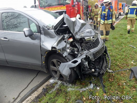 Gegen 11.15 Uhr war die aus dem Kreis Altenkirchen stammende 23-Jährige mit einem VW Polo auf der L 350 in Richtung Wiehl unterwegs. Auf einer langen Geraden kam sie zunächst aus ungeklärter Ursache nach rechts auf den unbefestigten Grünstreifen. Beim Versuch, den Wagen wieder auf die Fahrbahn zu lenken, verlor die 23-Jährige die Kontrolle über den VW Polo. Der Wagen stellte sich quer und stieß mit der Beifahrerseite voran auf der Gegenfahrbahn mit einem entgegenkommenden Opel Mokka eines 71-Jährigen aus Wiehl zusammen. Durch die Wucht des Aufpralls wurde der VW Polo auf eine angrenzende Wiesenfläche geschleudert, wo der Wagen auf der Fahrerseite zum Liegen kam.