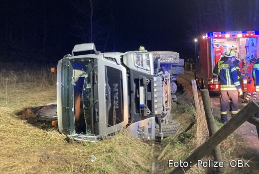 Radevormwald - Bei einem Wendemanöver am Mittwochabend kippte der LKW eines 57-Jährigen in den Graben neben der unbefestigten Straße Obergraben in Radevormwald. Der 57-jährige LKW-Fahrer aus Hamm wollte gegen 20:00 Uhr wenden. Beim Wenden war ein Rad der Hinterachse unbemerkt auf den aufgeweichten Untergrund geraten. Dadurch kippte der LKW um und blieb seitlich liegen. Hierbei wurde der 57-Jährige leicht verletzt und kurzzeitig in ein nahegelegenes Krankenhaus gebracht.