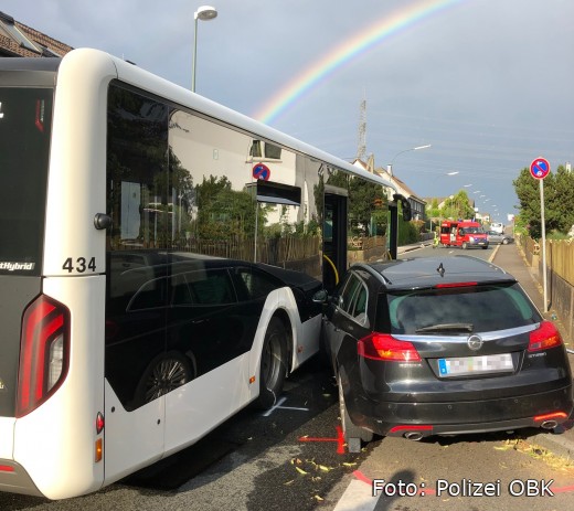 Hückeswagen - Auf der Wiehagener Straße, im Bereich der Einmündung zum Schmalbeinsweg, kam es am Montagabend zu einem Zusammenstoß zwischen einem Opel und einem Linienbus. Der Bus fuhr gegen 18.55 Uhr auf der Wiehagener Straße aus Richtung Lennep kommend in Fahrtrichtung Hückeswagen. Zeitgleich beabsichtigte ein 36-jähriger Autofahrer aus Wipperfürth vom Schmalbeinsweg nach links auf die Wiehagener Straße abzubiegen. Dabei kam es im Einmündungsbereich zur Kollision der beiden Fahrzeuge.