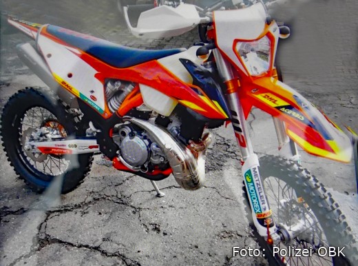 Reichshof - Eine Enduro der Marke KTM haben Unbekannte am Sonntag (30. Juli) in Reichshof-Nosbach gestohlen. Zwischen Mitternacht und sechs Uhr am Morgen drangen die Diebe in einen mit einem Vorhängeschloss gesicherten Schuppen ein, indem sie das Schloss mit einem Bolzenschneider zerstörten. Anschließend holten sie das Motorrad vom Typ KTM 300 EXC aus dem Schuppen und entwendeten es.