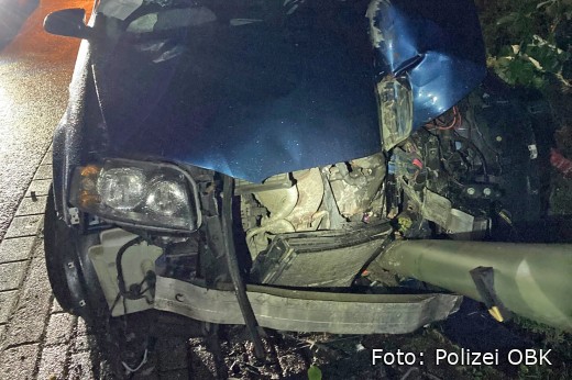 Lindlar - Nach einem Unfall im Industriegebiet Klause am späten Freitagabend (28. Juli) hat der Fahrer oder die Fahrerin das Auto an der Unfallstelle zurückgelassen und ist von der Unfallstelle geflüchtet. Gegen 23.45 Uhr hatten Zeugen in der Gerberstraße einen lauten Knall gehört. Kurz darauf entdeckten sie einen verlassenen PKW, der mit großer Wucht gegen eine Straßenlaterne geprallt war. Die Laterne knickte dabei fast vollständig um und musste von der Feuerwehr zersägt werden. Der Unfallwagen war nicht mehr fahrbereit und wurde von der Polizei sichergestellt.
