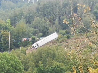 Bergneustadt - Bei einem LKW-Unfall auf der B55A hat sich am Freitagmorgen ein LKW-Fahrer aus Belarus schwere Verletzungen zugezogen. Der 39-Jährige war gegen 07.35 Uhr mit einem Sattelzug aus Richtung der Autobahn gekommen und in Richtung Bergneustadt gefahren. In einer 90-Grad-Kurve am Ende der Kraftfahrstraße fuhr er nach Zeugenangaben ungebremst geradeaus. Der Sattelzug fuhr über die ansteigende Böschung hinweg und stürzte anschließend einen steilen Abhang hinab.