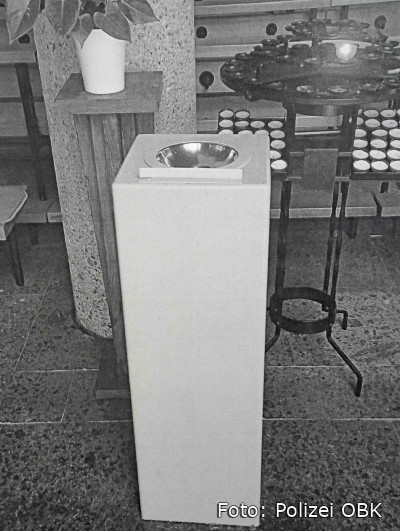 Gummersbach - Einen Spendentresor haben Unbekannte am Sonntagnachmittag (10. Dezember) aus dem Vorraum der St. Franziskus Kirche in der Moltkestraße gestohlen. Den recht schweren, etwa 1 Meter hohen und 40 cm breiten Tresor haben die Täter in der Zeitspanne zwischen 13.45 und 16.45 Uhr in dem unverschlossenen Vorraum der Kirche an sich genommen und abtransportiert.