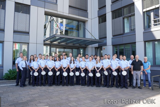 Oberberg - Für 30 Kommissaranwärter ist am Montag, 8. Juli, der erste Schritt in den echten Polizeialltag gestartet. Die Studierenden des Einstellungsjahrgangs 2023 treten nun ihr erstes Praktikum des dualen Studiums an und lernen die Praxis kennen. Abteilungsleiter Sascha Himmel und Direktionsleiterin Gefahrenabwehr/Einsatz Gabriele Mälchers begrüßten die Neulinge an ihrem ersten Tag in Gummersbach.