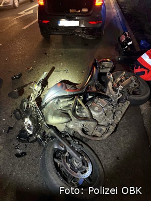 Radevormwald - Am Donnerstag (23. Januar) war ein 22-jähriger Motorrad-Fahrer aus Remscheid auf der Elberfelder Straße in Richtung Remscheid unterwegs. Gegen 18:40 Uhr fuhr er auf den Hyundai eines 38-jährigen Kölners auf, der verkehrsbedingt abbremsen musste. Der Zweiradfahrer wurde mit leichten Verletzungen in ein Krankenhaus gebracht. Sein Motorrad war nicht mehr fahrbereit und musste abgeschleppt werden. (red.-Freitag, 24. Januar 2025)