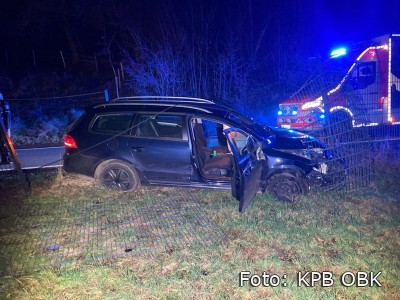 Marienheide - Bei einem Verkehrsunfall in Kotthausen wurde am Montag (22. Dezember) ein 19-jähriger Gummersbacher leicht verletzt. Der VW-Fahrer war gegen 19:10 Uhr auf der Gimborner Straße von Himmerkusen in Richtung Kotthausen unterwegs, als er von der Straße abkam und gegen eine Straßenlaterne sowie einen Zaun prallte. Das Auto war nicht mehr fahrbereit und musste abgeschleppt werden. Die Gimborner Straße war bis 19:45 Uhr voll gesperrt. (red.-Dienstag, 23. Dezember 2025)