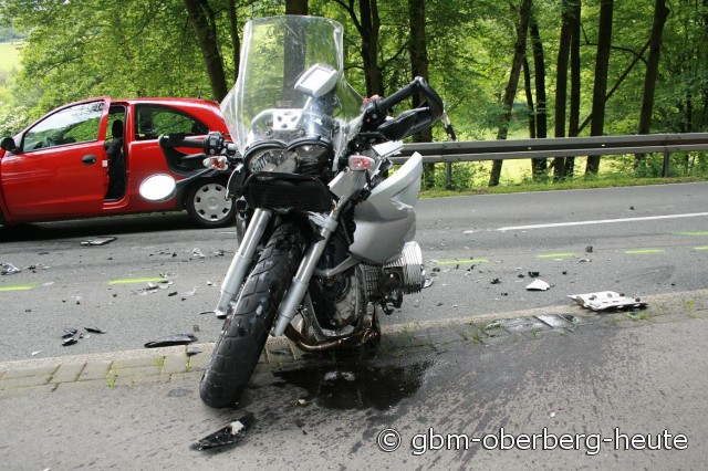 Nümbrecht - Eine auswärtige Gruppe von sechs Motorradfahrern war auf dem Weg von der Homburger Papiermühle in Richtung Elsenroth, als ihnen ein PKW teils auf ihrer Fahrbahn entgegenkam. Der Mercedes kollidierte mit zwei Motorrädern. Zwei Kradfahrer und eine Sozia wurden schwer verletzt.