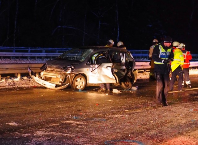 Unmittelbar danach geriet dann auch der silberfarbene Honda des Senioren-Pärchens an gleicher Stelle außer Kontrolle und prallte frontal gegen die rechtsseitige Leitplanke. Anschließend kollidierte der Wagen mit dem Opel der beiden bereits Ausgestiegenen. Diese wurden - gemäß derzeitigem Spurenbefund - infolgedessen von ihrem eigenen Pkw getroffen und auf die Fahrbahn geschleudert. Wiederum abgewiesen, kam der Honda letztlich auf dem rechten von zwei Überholstreifen zum Stehen. Die beiden Insassen wurden in ihrem Fahrzeugwrack eingeklemmt und mussten voneingesetzten Feuerwehrkräften befreit werden.