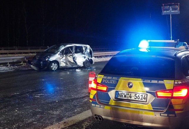 Nach aktuellem Ermittlungsstand hatte der 47-Jährige mit seinem Beifahrer (48) im roten Corsa die A 4 in Richtung Olpe befahren. Auf Höhe der Alpebachtalbrücke verlor er aufgrund eisglatter Fahrbahn die Kontrolle über den Kleinwagen und kollidierte mehrfach mit der Seitenschutzplanke. Erheblich beschädigt kam der Wagen auf dem Seitenstreifen zum Stehen. Die beiden Insassen verließen daraufhin das Fahrzeug.