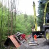 Der Waldweg in der Nutscheid musste erst mit Schotter befahrbar gemacht werden, bevor die schweren Bergungsfahrzeuge der Firma Ley zum Einsatz kommen konnten. Zwei Autokrane hievten den LKW schließlich wieder auf den Weg. Die Bergungsmaßnahmen dauerten bis in die Abendstunden. Der Fahrer erlitt bei dem Unfall Verletzungen. Unfallursache und Schadenhöhe sind derzeit noch nicht bekannt. (oh-6.5.2005 10:48)