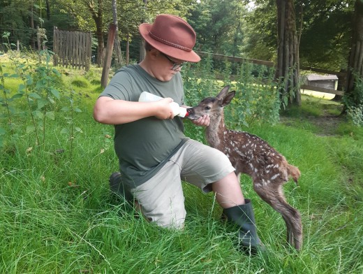 Wiehl - Wer derzeit das Rotwild im Wiehler Wildpark besucht, begegnet möglicherweise einem jungen Kalb. Hierbei handelt es sich um ein Nachzüglerkalb, dessen Mutter es am 20.Juli zur Welt brachte und aus unbekannten Gründen nicht angenommen hat. Daher erhält es zurzeit viermal täglich von den Mitarbeitern des Wildparks die Flasche. Der „Ersatzmutter“ folgt es nach der Mahlzeit stets zum Tor, wo es sich dann zuweilen auch ablegt und von den Besuchern betrachtet werden kann.