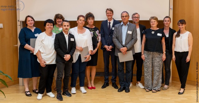 Oberberg - Die Übergabe der Qualitätssiegel-Zertifikate fand am Universitätsklinikum Bonn statt und wurde vom „mre-netz regio rhein-ahr“ ausgerichtet.Das mre-netz regio rhein-ahr ist ein seit 14 Jahren bestehendes, etabliertes Hygiene-Netzwerk, das die Verbreitung sogenannter „Krankenhauskeime“ präventiv und erfolgreich bekämpft. Das erfolgreiche und bundesweit anerkannte MRE-Netzwerk wird durch die Beiträge der 10 zusammengeschlossenen Gesundheitsbehörden finanziert. Diese erarbeiten gemeinsam mit den Hygienikern des Hygieneinstitutes der Universität Bonn Standards für die krankenhaushygienischen Überwachung in der Region und bilden zudem Fachärzte als Krankenhaushygieniker für die Region aus.