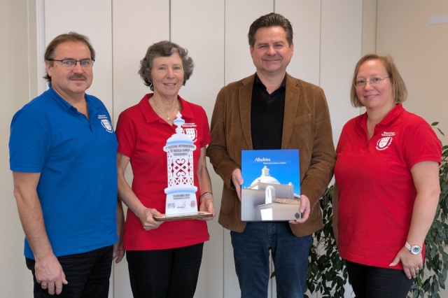 Begeistert berichtete Edeltraute Gündisch-Wagner, Leiterin der Tanzgruppe, von der Reise nach Albufeira an der Algarve und den Auftritten dort. Sie war mit Tanzkollegin Anita Gutt, Mittänzer Helmut Scharpel und Enni Janesch ins Wiehler Rathaus gekommen - nicht nur, um zu erzählen, sondern auch, um an Bürgermeister Ulrich Stücker Buchgeschenke weiterzugeben. Zwei Bücher über die Stadt hatte die Kulturreferentin von Albufeira, Cláudia Guedelha, den Tänzerinnen und Tänzern bei einem Empfang im Rathaus überreicht. Zwei weitere Exemplare waren ausdrücklich für den Wiehler Bürgermeister bestimmt, verbunden mit besten Grüßen. Von der Gruppe selbst bekam Ulrich Stücker zwei gerahmte Fotos vom Portugal-Aufenthalt geschenkt.