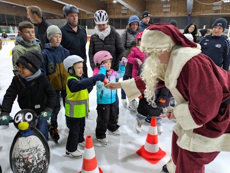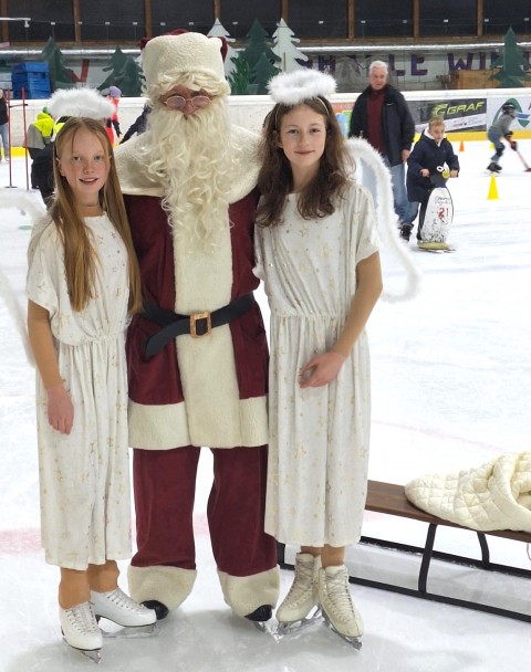 Mit Engelchen und großem Schlitten zur Eissporthalle