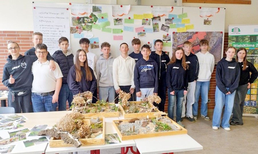 | Die Schülerinnen und Schüler des MINT-Kurses an der TOB-Sekundarschule haben sich mit klimagerechter Schulhofgestaltung befasst. (Foto: Stadt Wiehl) |