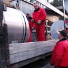 Die Firma Ley-Krane rückte an, um die schweren Rollen vorschriftsmäßig zu verladen und zu sichern. Der LKW konnte zwar anschließend aus eigener Kraft von der Unfallstelle tuckern, wurde aber aus dem Verkehr gezogen, da er aufgrund der Beschädigungen nicht mehr fahrtauglich ist. (soh-14.03.2006 21:13)