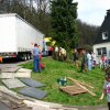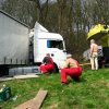 Die „Dinge“, die kamen und das verunglückte Fuhrwerk wieder auf die Beine stellten, war Ley-Krane und Helfer, die das köstliche Gut abluden - ohne daran zu nippen. Erfrischung lieferte eine Anwohnerin, die mit einer Kiste Wasser für neue Kraft sorgte.