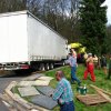 Die Bierkästen wurden schließlich von Hand abgeladen, der Laster durch Bohlen und ähnliche Hilfsstege gesichert, der LKW per Kran auf die Straße gestellt und wieder auf Tour gebracht. Während der Bergung war die Dreibholzer Straße über mehrere Stunden voll gesperrt. (soh-20.04.2006 20:00)