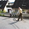 Durch den lauten Knall wurden die Anwohner auf den Plan gerufen, die sch die Bergung nicht entgehen ließen und bei dem schönen Wetter auf Campingstühlen der Dinge harrten.