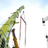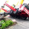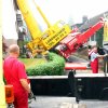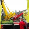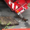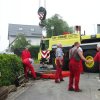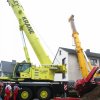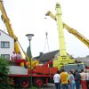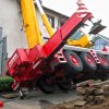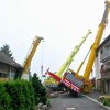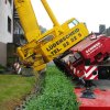 Der verunglückte Kran war bei Arbeiten an einem Einfamilienhaus umgekippt, als er Deckenelemente auf einen Anbau montieren wollte. Der Kran stürzte beim Drehen gegen das gegenüberliegende Mehrfamilienhaus. Das große Gefährt konnte am Samstagnachmittag vom Spezialisten-Team der Firma Ley-Krane aus Gummersbach wieder aufgerichtet werden, nachdem ein anderer Kran seine Bemühungen bereits am Freitagnachmittag erfolglos einstellen musste.