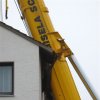 Hülscheid - Unter „Gleichgewichtsstörungen“ litt am Freitagmorgen ein Kran, der beim Drehen den Boden unter zumindest einem Fuß verlor, umkippte und sich im Dachstuhl eines Mehrfamilienhauses verkeilte. Ein Spezialisten-Team von Ley-Krane stellte den Unglückskran wieder auf die Beine…