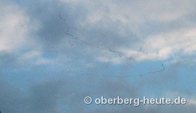 Schon im Februar lohnt sich wieder ein Blick zum Himmel, wenn man aus weiter Ferne die typischen Schreie zu hören glaubt, denn dann dürften je nach Wetterlage schon die ersten Rückkehrer zu sehen sein. (oh-20.11.2005 09:03)